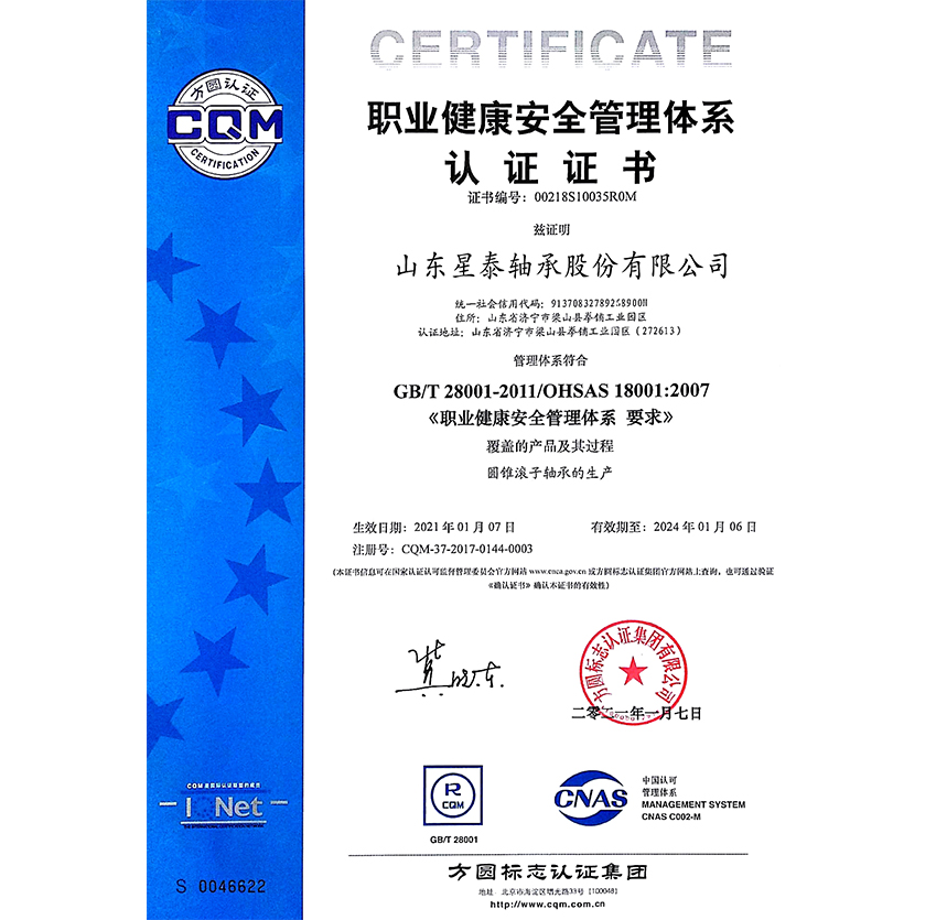 職業健康(kāng)安全管理體(ti)系認證證書(shū)